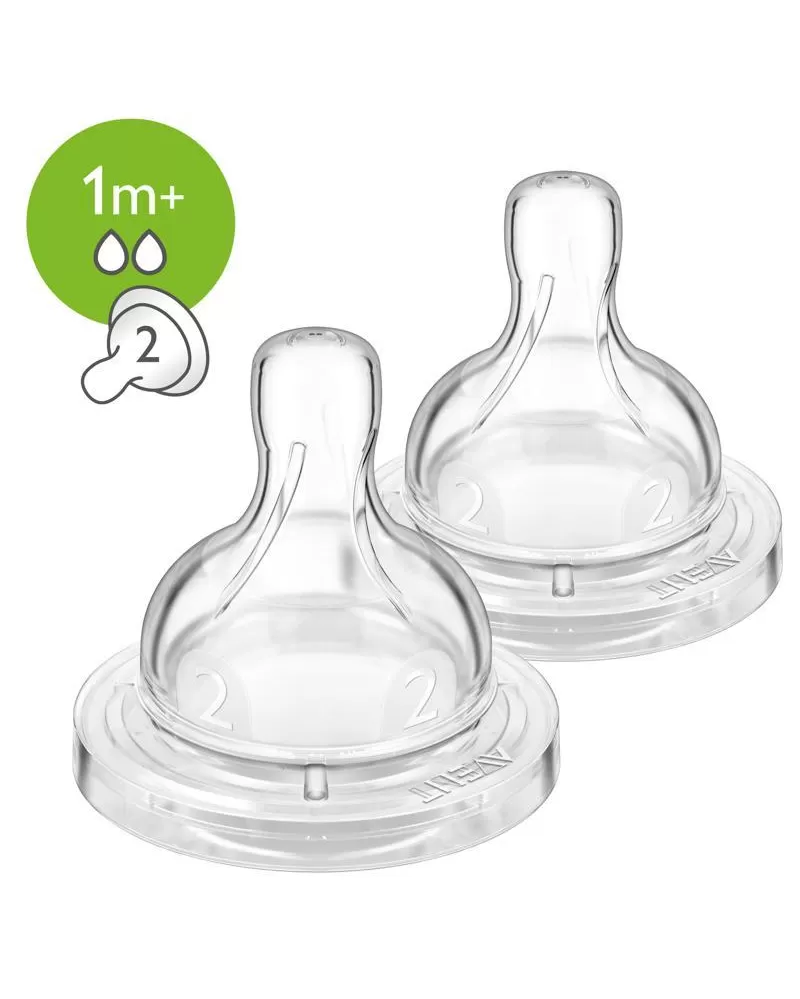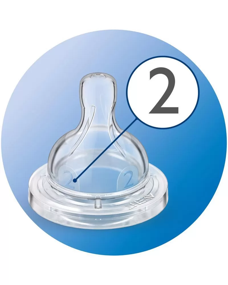 • 2 otvory • pomalý průtok • 1 m+ Dudlík na láhev AVENT extra měkký se 2 otvory – s pomalým průtokem. Pro děti od 1 měsíce. Dudlíky AVENT jsou vyráběny z měkkého a tenkého silikonu. Žebrování je prodlouženo a dudlík je o něco celkově vyšší. Těsnící lem je snížen. Tyto novinky zaručují stálost tvaru dudlíku a ještě dokonalejší podobnost s kojením z prsu maminky. Silikonový dudlík AVENT je navržen tak, aby svým tvarem a funkcí co nejvíce připomínal maminčin prs. Má speciální patentovaný okraj, který funguje jako jednosměrný ventil. Dudlík umožňuje proudění vzduchu do lahvičky během krmení, čímž zamezuje vzniku vakua v lahvičce. Dítě se nemusí dudlíku při krmení pouštět a může pít souvisle jako při kojení bez polykání vzduchu. Právě polykaný vzduch během krmení vyvolává pláč způsobený bolestivou kolikou nebo nadýmáním. Klinické pokusy provedené univerzitami v Londýně a Cambridge prokázaly, že novorozenci krmení lahvičkami AVENT trpěli méně kolikami a po probuzení byli spokojenější než děti, které byly krmeny z obyčejných lahví. Široký tvar měkkého dudlíku nutí dítě zeširoka otevřít ústa a doslova se k dudlíku přisát. Může tak začít sát a používat přitom stejné pohyby jazyka a dásní jako při kojení. To je důvod, proč je s AVENTEM snadné kombinovat kojení s krmením z lahvičky. UPOZORNĚNÍ! - Neustálé a dlouhodobé sání tekutin způsobuje zubní kaz. - Před krmením vždy zkontrolujte teplotu jídla. - Při prvním náznaku poškození nebo opotřebení výrobek vyhoďte. - Nepoužívané součásti výrobku uchovávejte mimo dosah dětí. - Nikdy nespojujte se šnůrami, stuhami, tkaničkami nebo s volnými částmi oblečení, mohlo by dojít k uškrcení dítěte. - Nikdy nepoužívejte dudlík na krmení jako běžný dudlík. - Používejte tento výrobek vždy pod dohledem dospělých. Před prvním použitím vyčistěte výrobek a poté ho umístěte do vroucí vody po dobu 5 minut. Tím zajistíte nezbytnou hygienu. Po každém použití výrobek omyjte horkou mýdlovou vodou, odstraňte jakékoli zbytky výživy a důkladně opláchněte. Pokud používáte k čištění špičky krmícího dudlíku kartáček, čistěte dudlík co nejopatrněji, aby nedošlo k jeho poškození. Před každým použitím výrobek omyjte, abyste zajistili nezbytnou hygienu. Nedovolte dětem, aby si hrály s malými částmi nebo aby při používání lahví a pohárků chodily nebo běhaly. Neumisťujte výrobek do rozehřáté trouby nebo mikrovlnné trouby. Nepoužívejte agresivní čisticí prostředky. Nepokládejte součásti na povrchy vyčištěné antibakteriálními čisticími prostředky. Plastové obalové materiály mohou podléhat vlivu sterilizace a vysokých teplot. Před každým použitím výrobek zkontrolujte a natáhněte krmicí dudlík do všech směrů. Při prvním náznaku poškození nebo opotřebení výrobek vyhoďte. Doporučujeme měnit krmicí dudlíky každé 3 měsíce. Krmicí dudlíky uchovávejte v suché a uzavřené nádobě. Neponechávejte krmicí dudlík na přímém slunci, nevystavujte jej horku ani nenechávejte v dezinfekčním přípravku (sterilizační roztok) po delší než doporučenou dobu. Mohlo by to vést k opotřebení dudlíku. Adresa dodavatele: Philips Consumer Lifestyle B.V., Tussendiepen 4, 9206 AD Drachten, The Netherlands, PH.CentralRegulatoryOfficer@philips.com